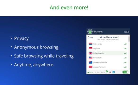 아울러 아래와 같은 장점들로 인해 많은 사람들이 Browsec을 선택하고 있습니다.