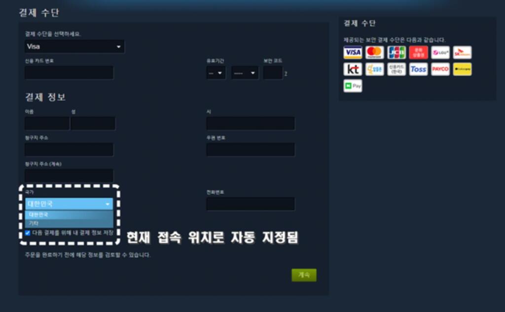 스팀은 접속 IP뿐 아니라 결제 수단, 청구 주소, 최근 구매 기록을 종합적으로 검토해 스토어 국가를 결정합니다.