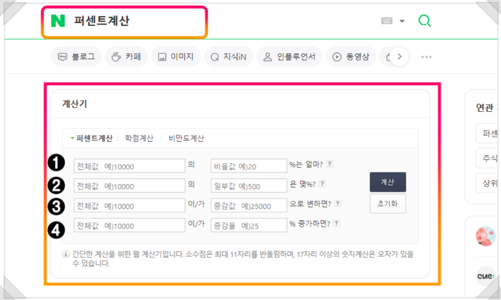 네이버 퍼센트 계산기 사용 방법