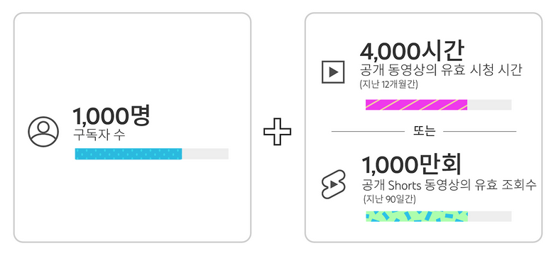 - 시청 시간은 일반 영상 기준 최근 12개월 내 누적 4,000시간 이상이 필요합니다.